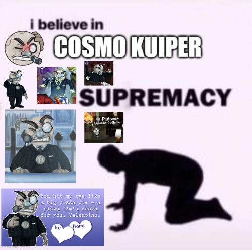 Also, Mozzarella Styx itself! I love how much care went into this place, especially with the small details. The drink machine, the very dubious menu, the secret outfit! The way the music changes when you go into the freezer!! I also love that it's kinda become the hangout spot for events or updates, if not just because I'm glad it's getting attention.I could definitely keep yapping all day, but you get the idea.Cosmo Kuiper and the Satellite Investors mean so so so much to me. It may have taken me awhile to see them and then come around to them as my favorites (FFS I left this fight for third to last!! I regret that now LOL), but I'm glad I did. I wouldn't change my love of these characters for anything, and I'm so glad for the Corporate Clash's 1.3 update for giving me the funny moon man and his skeleton robot crew! <3βοΈ Joining the System Rank-Up Task + first time fighting him on 2/7/2023 βοΈ